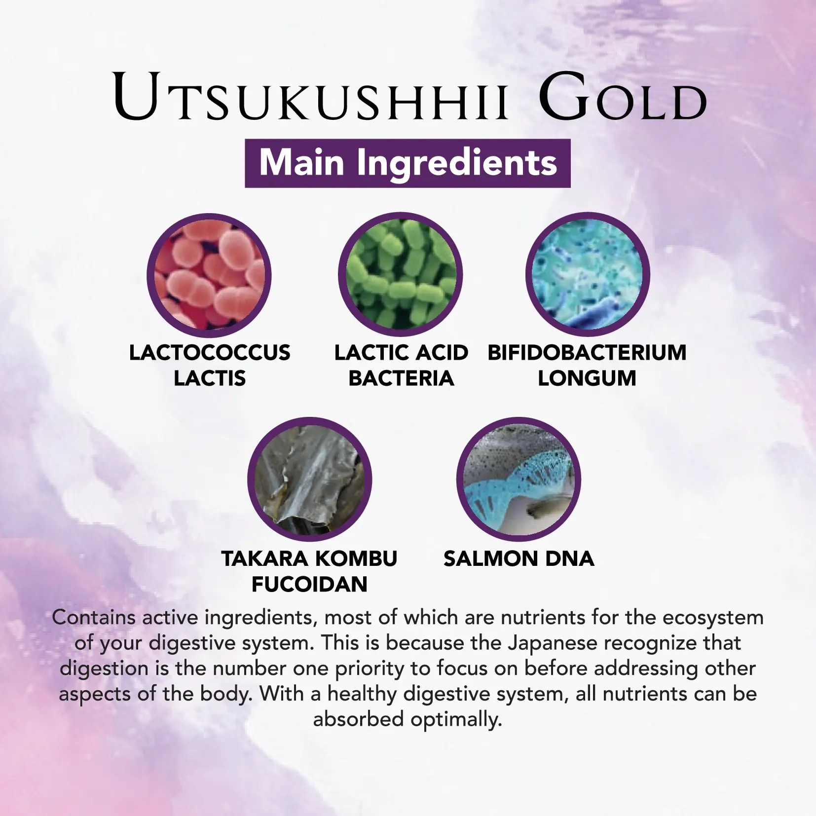 Dengan kombinasi bahan-bahan alami dan probiotik unggul, Utsukushii Gold menjadi solusi yang efektif untuk meningkatkan kesehatan usus dan menjaga sistem tubuh tetap sehat.